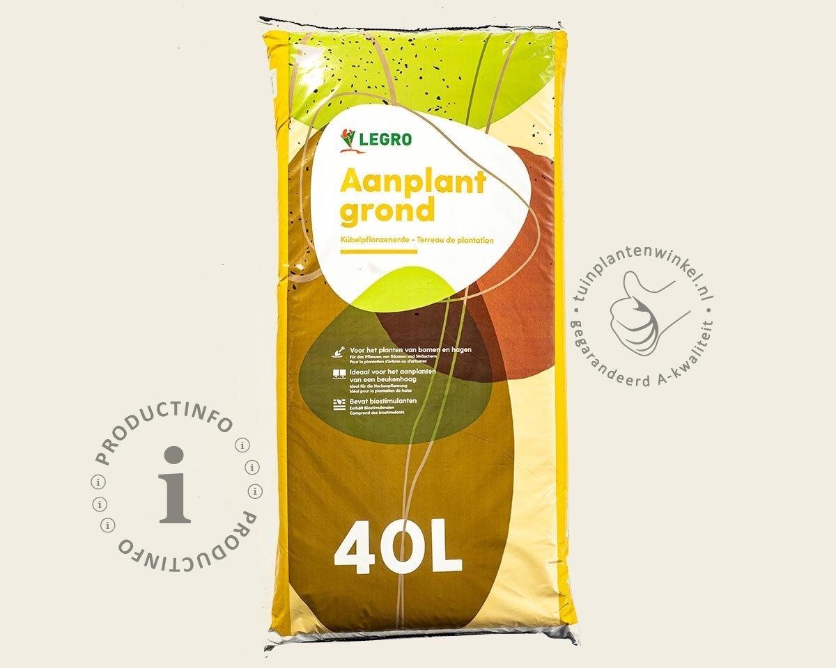 Aanplantgrond wordt gebruikt bij de aanplant van bomen, heesters en alle andere tuinplanten in uw tuin. Het zorgt voor een goede grondslag, zodat uw planten meteen goed kunnen gaan groeien. Aan aanplantgrond is een zogenaamde actieve wortelstimulator toegevoegd. Deze wortelstimulator zorgt ervoor dat de wortels een goede start maken. Deze wortelstimulator levert bij alle soorten tuinplanten een positieve bijdrage aan de beworteling en doorgroei. U kunt aanplant puur gebruiken, of mengen door de bestaande grond. Aanplantgrond is niet geschikt voor gebruik in bloempotten.