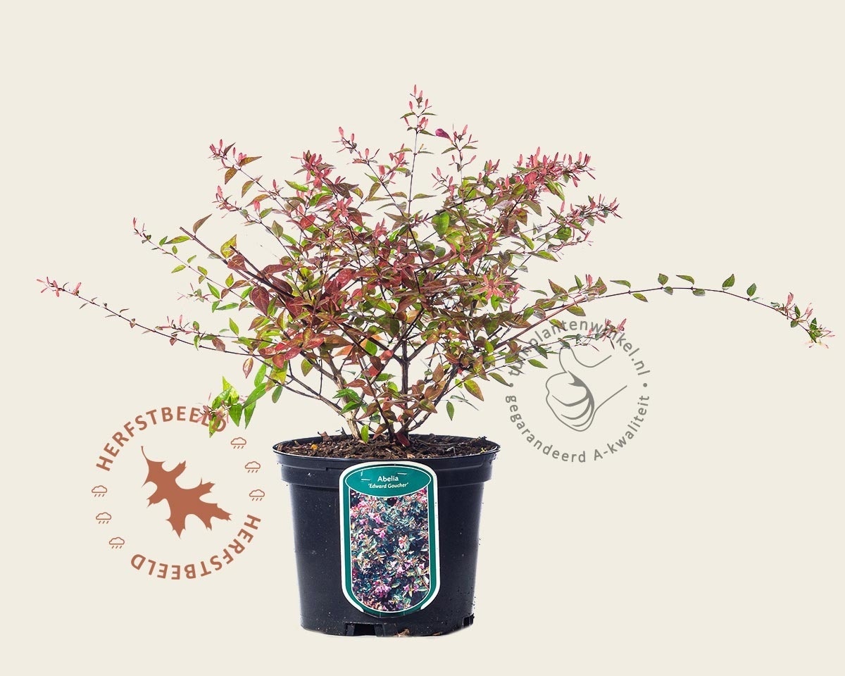Abelia 'Edward Goucher' is een half wintergroene heester die van nature een bredere dan hoge groeiwijze heeft. Zolang de temperatuur boven de -10 graden blijft, is de Abelia grandiflora 'Edward Goucher' wintergroen. Wordt het kouder, dan valt het blad wel van de tuinplant af; het is dus een halfwintergroene heester. De bloeiperiode van de sierheester is in de zomer: in juli, augustus en september krijgt Abelia 'Edward Goucher' roodroze bloemen, die bijen en vlinders aantrekken. De plant doet het prima als solitair in de border. Het donkergroen blad kleurt in de herfst mooi rood af.