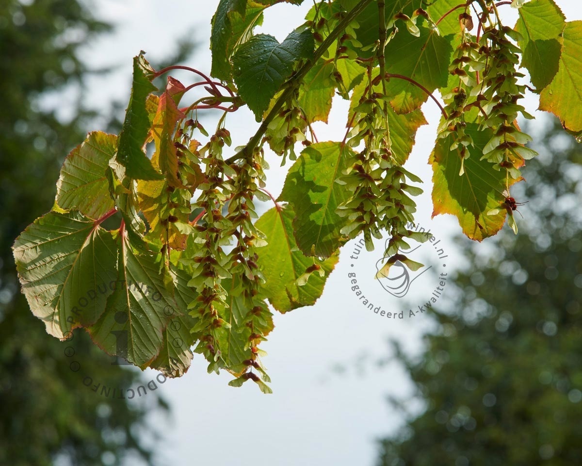 Acer davidii - XL is een sierlijke esdoorn, die oorspronkelijk uit China komt. Opvallend bij de tuinplant is de stam met de grijs-witte strepen, die in de lengte lopen en in de winter, wanneer de boom kaal is, heel mooi uitkomen. Daarbij hebben jonge takken een donker purper-rode kleur. De Chinese esdoorn krijgt een ronde kroon, met ovaalronde bladeren. In het najaar verkleuren die oranjerood. De bloemen vormen afhangende trossen met een lichtgele kleur. Zet Acer davidii - XL solitair in een border of in een gazon van wat grotere tuin of park.