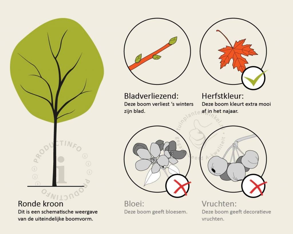 Bomen van tuinplantenwinkel.nl kunt u jaarrond planten. Dit kan omdat we al onze bomen in pot leveren. Aanplanten in de herfst, winter, lente én zomer is dus altijd mogelijk, met aangroeigarantie!