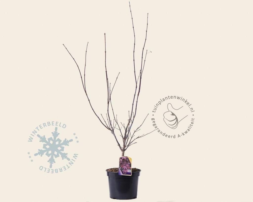 Acer palmatum 'Atropurpureum' is een mooie blikvanger in uw tuin. De langzaam groeiende tuinplant met een open grillige structuur en diep ingesneden, handvormige bladeren (palmatum verwijst naar handpalm) met de Nederlandse naam Japanse esdoorn is een sieraad voor elke tuin. Deze Acer wordt vaak gebruikt als solitaire sierstruik in Japanse tuinen en vanwege zijn trage groei en open structuur zelfs als potplant. Acer palmatum ‘Atropurpureum' krijgt in het voorjaar schitterende, rode bladeren die in de herfst verkleuren naar purperrood. De tuinplant is goed winterhard en heeft ook in de winter decoratieve waarde door zijn grillige takkenstructuur.