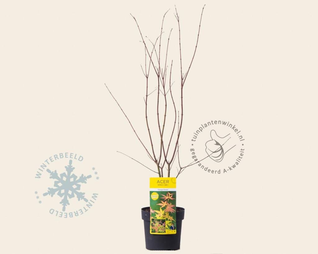 Acer palmatum 'Orange Dream' is een aanrader voor elke tuin. De verkleuring van de bladeren is bijzonder; in het voorjaar loopt deze tuinplant uit met oranjekleurig blad, dat langzaam zalmroze wordt en in de zomer geelgroen is. In het najaar worden de bladeren mooi geel en vallen ze tenslotte af. De Japanse esdoorn is goed winterhard. De 'Orange Dream' heeft een meer opgaande, bossige groeiwijze.
