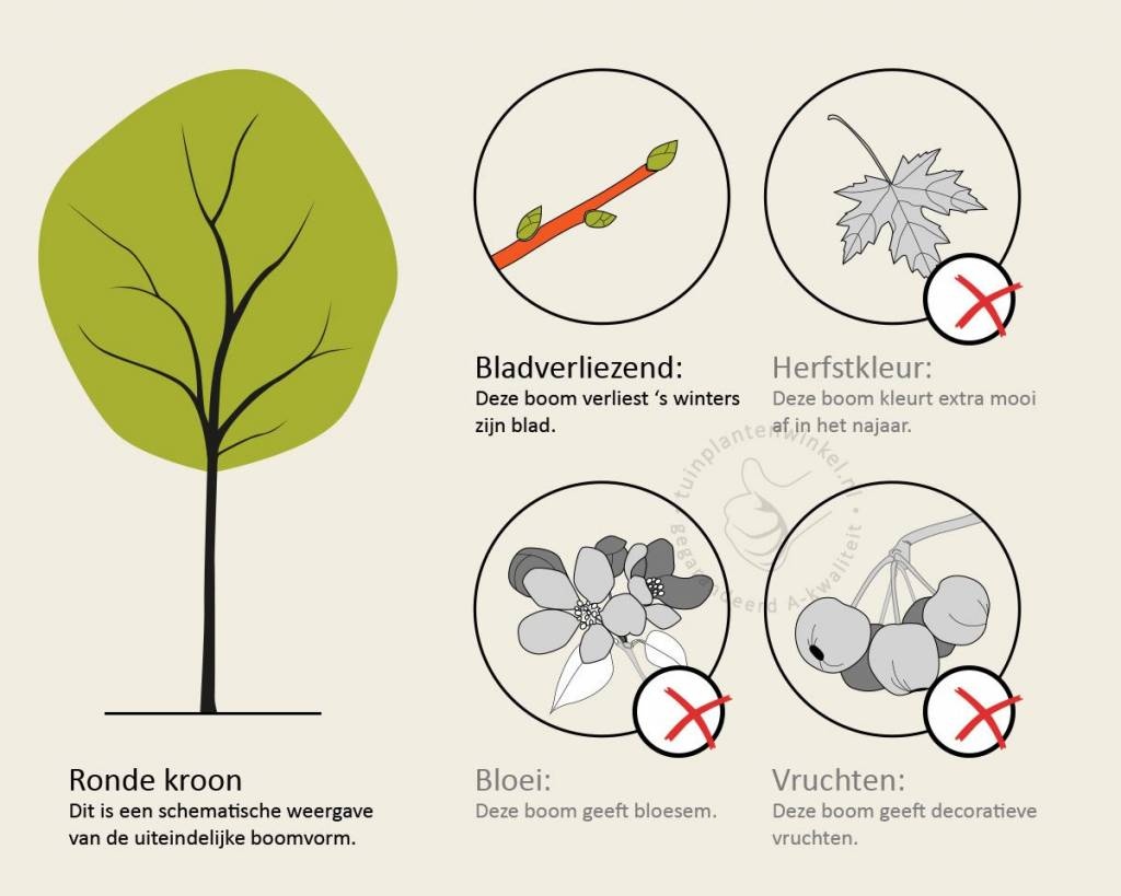 Bomen van tuinplantenwinkel.nl kunt u jaarrond planten. Dit kan omdat we al onze bomen in pot leveren. Aanplanten in de herfst, winter, lente én zomer is dus altijd mogelijk, met aangroeigarantie!