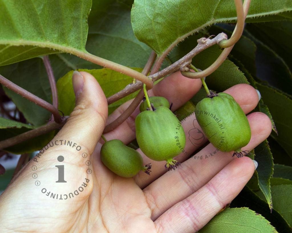 Actinidia arguta 'Bayern' is een vrouwelijke variant van de Kiwibes. Wanneer deze tuinplant door een mannelijke variant bestoven wordt, komen er vruchten aan. De vruchten van de Kiwibes zijn een stuk kleiner dan die van de grote kiwiplanten. Ze kunnen ook zo uit de hand gegeten worden. De Actinidia arguta 'Bayern' geeft groengekleurde vruchten met soms een rode vleug over de schil. De Kiwibes is een klimmende plant; hij slingert zich een weg omhoog. In het begin heeft Mini kiwi even een zetje nodig om op gang te komen; later lukt het vaak vanzelf. Een pergola is een ideaal hulpmiddel voor de Actinidia arguta 'Bayern' om zich er omheen te slingeren.