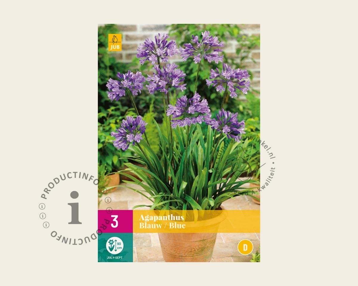 Agapanthus africanus kan ook goed in een pot worden aangeplant. Voordeel is dan dat u de plant met pot en al tijdens de winter op een vorstvrije, maar koele plaats weg kunt zetten. Denk bijvoorbeeld aan een onverwarmde schuur of garage. Geef de Afrikaanse lelie in pot zo nu en dan een klein beetje water zodat de wortels niet uitdrogen. In het voorjaar (vanaf medio april) kunt u de plant in pot weer buiten neerzetten.