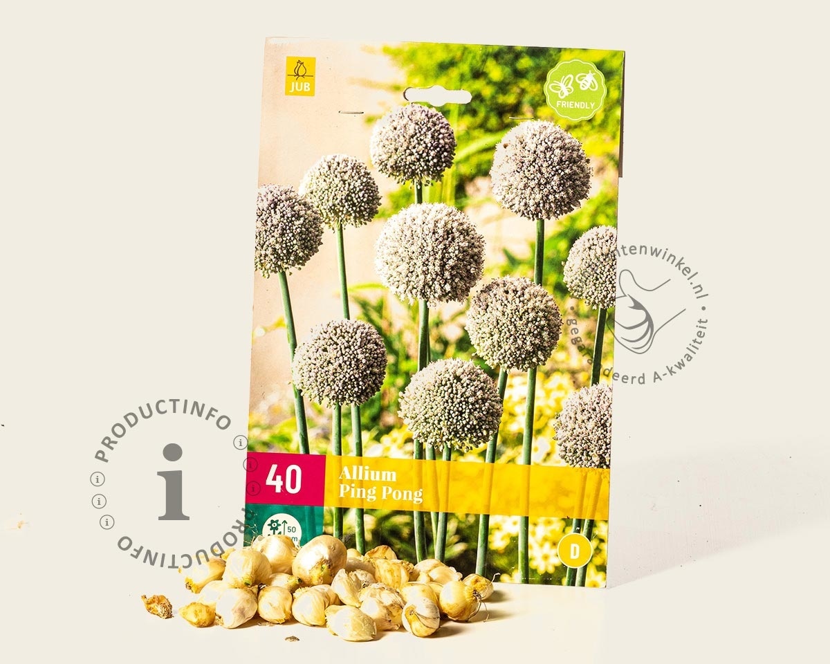 Bloembollen worden in de herfst en begin van de winter aangeplant. Let op dat u de Allium 'Ping-Pong' tijdig bestelt, want ze zijn maar een beperkte periode leverbaar. Plantdiepte van deze bloembol is ongeveer 10 cm onder de grond. (vanaf de onderkant van de bloembol gemeten). Strooi de bolletjes uit in de border en plant ze op de plaats waar ze terecht komen voor een natuurlijk effect.