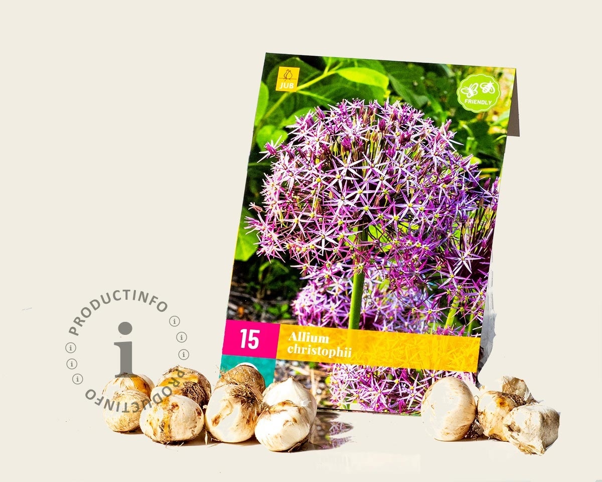 De Allium christophii mag u in het voorjaar eventueel wat organische mest bij geven. Dit zorgt dat de bollen zich goed gaan ontwikkelen. Deze allium soort is een van de vele soorten uit de lookfamilie en ook verwant aan de ui die we gebruiken in de keuken. Allium christophii is een trouwe terugkomer in de tuin. De Allium christophii kan goed worden gecombineerd met grassen en vaste planten en is zeker een plant die het zelfs in een rotstuin goed doet.