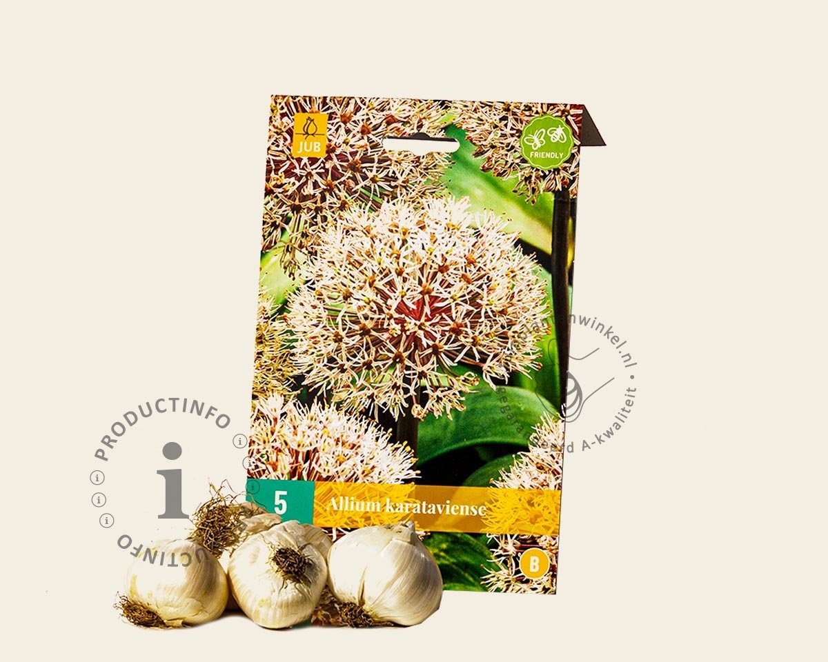 Bloembollen worden in de herfst en begin van de winter aangeplant. Let op dat u de Allium karataviense tijdig bestelt, want ze zijn maar een beperkte periode leverbaar. Plantdiepte van deze bloembol is ongeveer 10 cm onder de grond. (vanaf de onderkant van de bloembol gemeten).