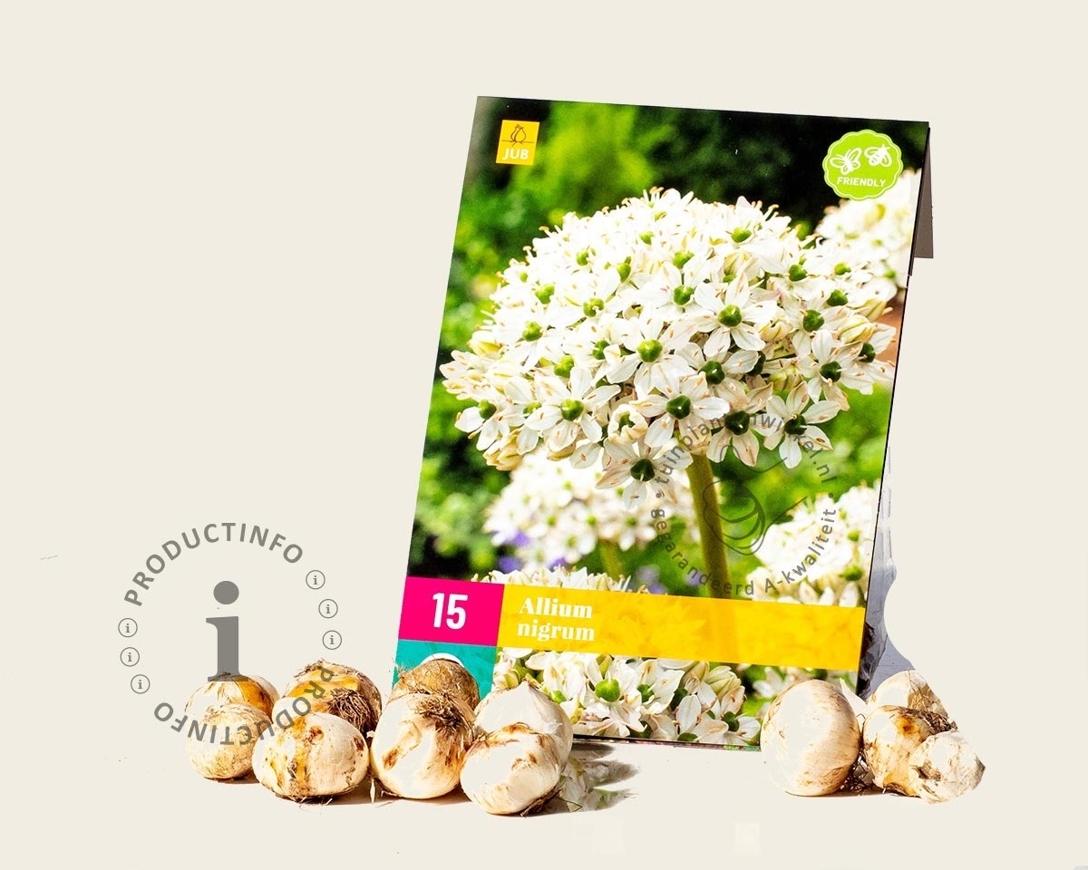 Bloembollen worden in de herfst en begin van de winter aangeplant. Let op dat u de Allium nigrum tijdig bestelt, want ze zijn maar een beperkte periode leverbaar. Plantdiepte van deze bloembol is ongeveer 15 cm onder de grond. (vanaf de onderkant van de bloembol gemeten). Plant ze eventueel samen met sneeuwklokjes, krokussen, tulpen en narcissen.