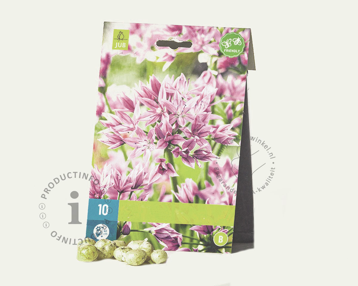 Een Allium met kleinere stervormige paars-roze bloemen. De groei is wat fijner dan bij de meeste sieruien waardoor de plant makkelijk combineert met siergrassen en vaste planten in de border.