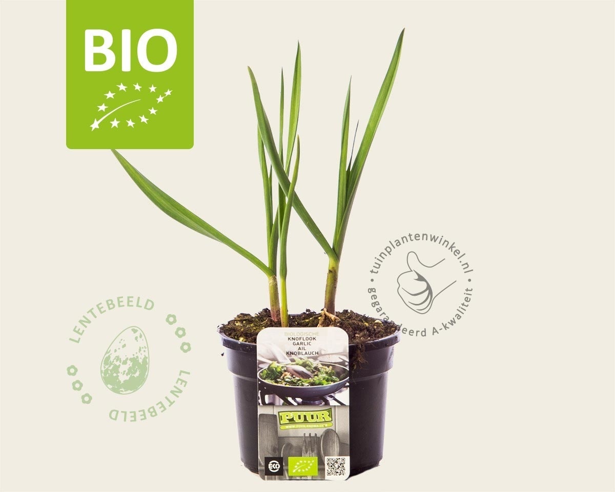 Belangrijke info: Deze knoflookplant is biologisch gekweekt door een, door SKAL gecertificeerde, kwekerij. Dit houdt in dat de plant niet is bespoten met insecticiden en dat er geen gebruik wordt gemaakt van kunstmest. Bij de planten treft u daarom soms wel eens een beestje (insect) aan bij levering. Ook kan het blad her en der wat vlekjes vertonen. Dit is niet erg en hoort bij de natuur. De knoflookplant kan hiertegen en zal gewoon verder groeien. Wij vragen uw begrip hiervoor.