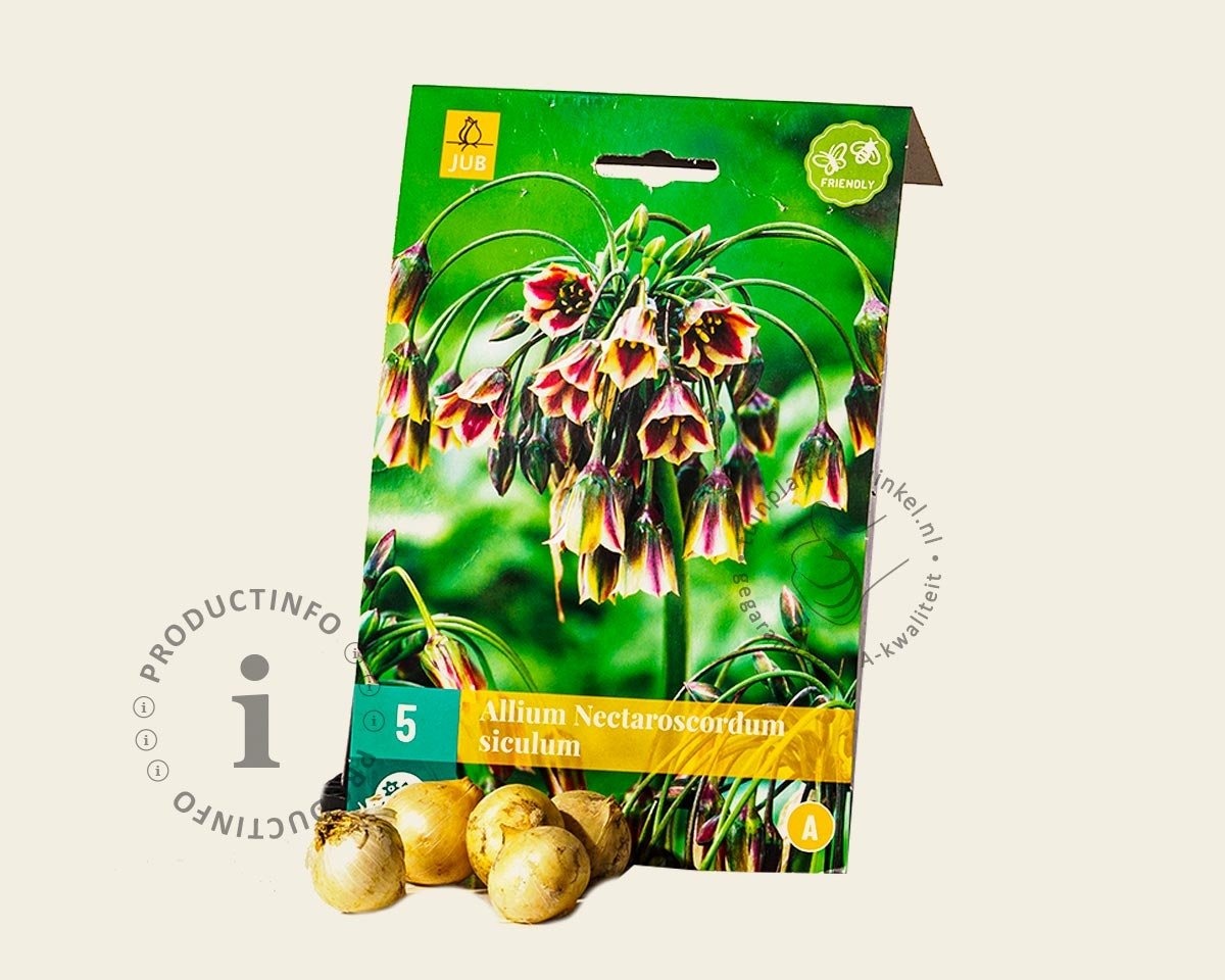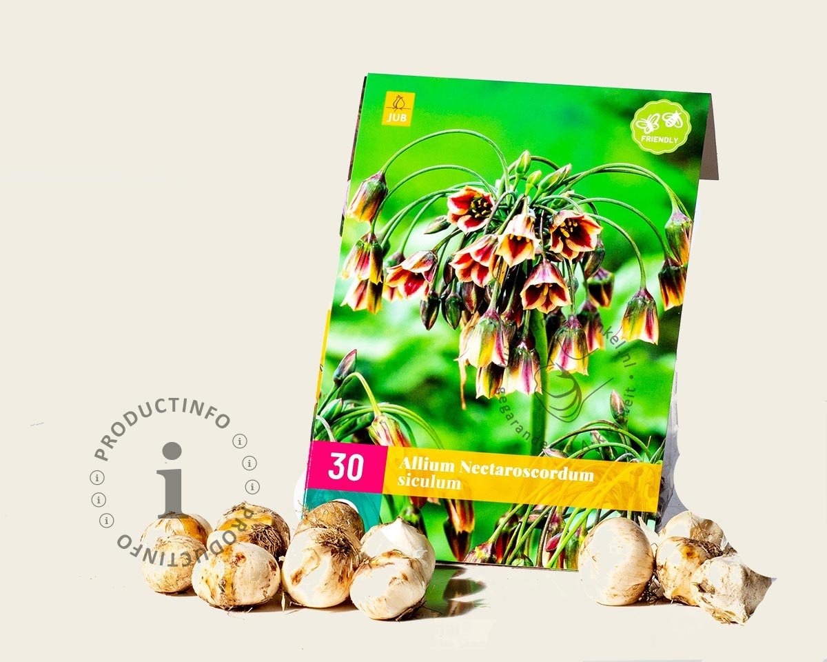 Bloembollen worden in de herfst en begin van de winter aangeplant. Let op dat u de Allium siculum tijdig bestelt, want ze zijn maar een beperkte periode leverbaar. Plantdiepte van deze bloembol is ongeveer 10 cm onder de grond. (vanaf de onderkant van de bloembol gemeten).