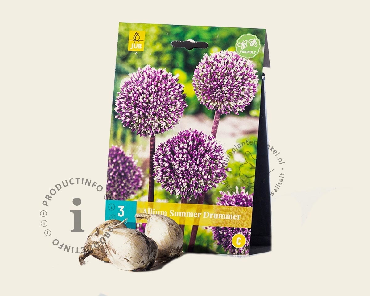 Allium wordt ook wel Sierui genoemd. De Allium 'Summer drummer' bloeit inderdaad op lange stelen. Deze Sierui is één van de hoogste soorten. De 'Summer Drummer' is een laat bloeiende Sierui. De bloemen zijn dieppaars van kleur en kunnen heel goed als snijbloem gebruikt worden. De bloemen worden druk bezocht door bijen.