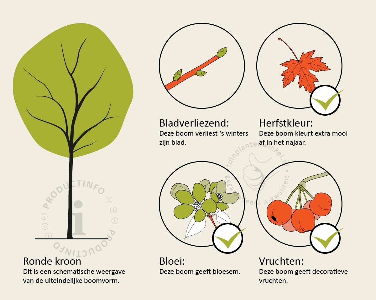 Bomen van tuinplantenwinkel.nl kunt u jaarrond planten. Dit kan omdat we al onze bomen in pot leveren. Aanplanten in de herfst, winter, lente én zomer is dus altijd mogelijk, met aangroeigarantie!