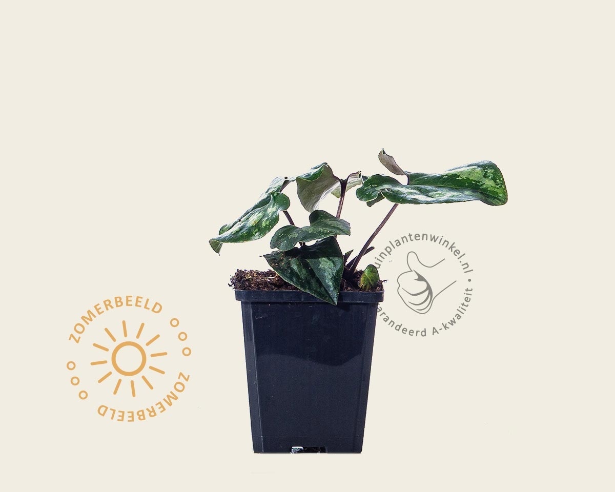 Asarum Splendens is een lage, groenblijvende, bodembedekkende plant voor schaduwrijke plaatsen. Deze tuinplant heeft bijzondere, decoratieve, groene bladeren met witte vlekken. Mansoor krijgt bij wat oudere planten bijzondere, meer onopvallende bloemen. Asarum splendens, Mansoor is vooral heel geschikt als bodembedekker, maar groeit traag en heeft een aantal jaren nodig om zich goed te ontwikkelen. Bij levering zijn deze planten vaak wat teerder dan andere vaste planten. Geef ze de tijd om te groeien. Het uiteindelijke beeld van deze bodembedekkende tuinplant is echter zeer de moeite waard.