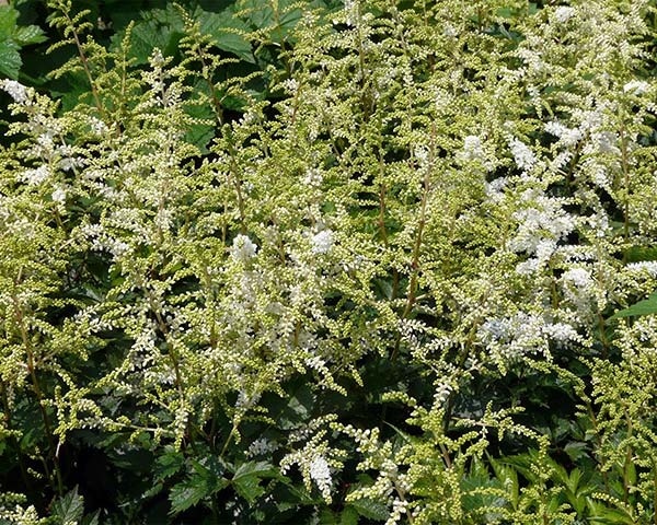 Astilbe japonica 'Deutschland' is een echte klassieker onder de vaste planten. De witte bloemaren in de zomer zijn niet te missen. Een uitbundige bloeier en bovendien een gemakkelijke tuinplant. Het blad lijkt wel wat op dat van een varen en is donkergroen tot in de herfst, daarna valt het af. Deze compacte tuinplant komt het mooist tot zijn recht als er een aantal bij elkaar gezet worden. Pluimspirea ofwel prachtspirea lokt vlinders en bijen en is verder geschikt als snijbloem in een gemengd boeket.