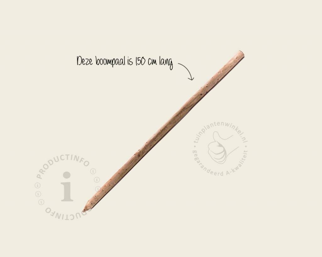 Deze boom paal heeft een afmeting van 150 centimeter en is daarom alleen geschikt voor kleine bomen (halfstam/laagstam). We raden deze boompaal aan bij leibomen uit de Small-serie, laagstam (lei)fruitbomen en halfstam (lei)fruitbomen. Voor grotere bomen raden we aan te kiezen voor de boompaal met een lengte van 200 centimeter.