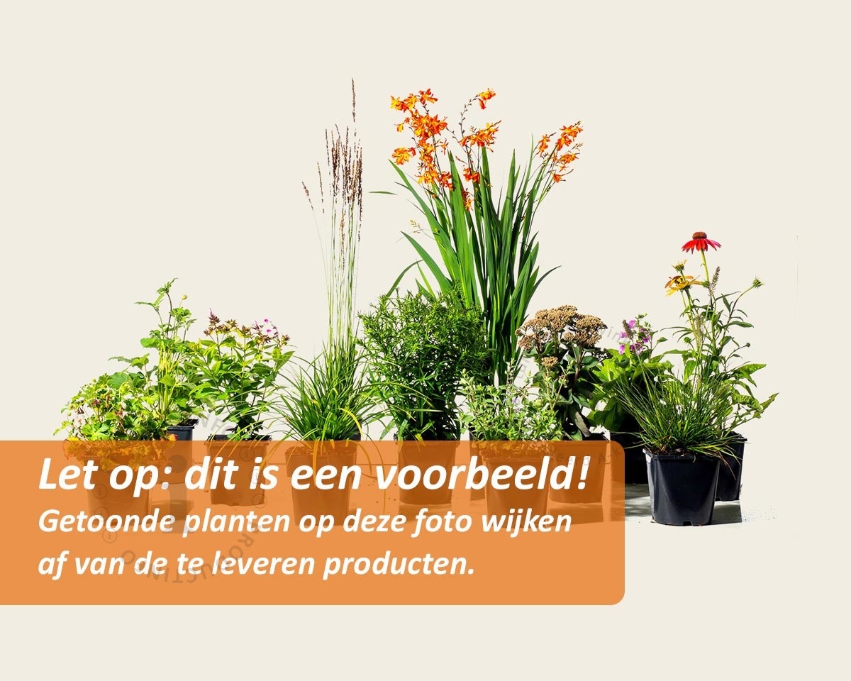 - U ontvangt een mix van 12 verschillende vaste planten en siergrassen in een grote 2 liter pot. Goed voor een border van 2 m2