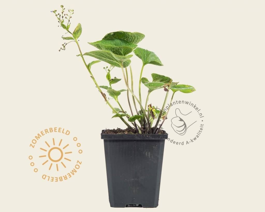 Brunnera macrophylla is een mooie voorjaarsbloeier met vergeet-mij-nietjes achtige bloeiwijze (kleine blauwe bloemetjes) in de periode april - mei. Deze vaste planten maken grote, decoratieve bladeren met een mooie herkenbare hartvorm. Kaukasisch vergeet-mij-nietje komt oorspronkelijk uit koude steppegbieden en weerstaat daardoor schrale en droge wind en je kunt hem goed combineren met Doronicum, Primula of Vinca.