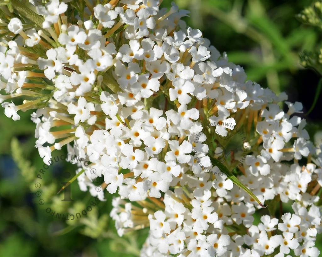De Vlinderstruik wit of Buddleja davidii 'White Profusion' bloeit van juli tot september met witte pluimen en is een ware attractie voor vlinders. De vlinders doen zich tegoed aan de nectar, waarmee elke bloem gevuld is. En bloemen zijn er genoeg. Elke aar van de Vlinderstruik wit is bezaaid met honderden, zo niet duizenden bloemen. In de winter blijven er enkele grijsgroene bladeren aan de Buddleja davidii 'White Profusion' zitten. Helemaal bladverliezend is de Witte Vlinderstruik dus niet.