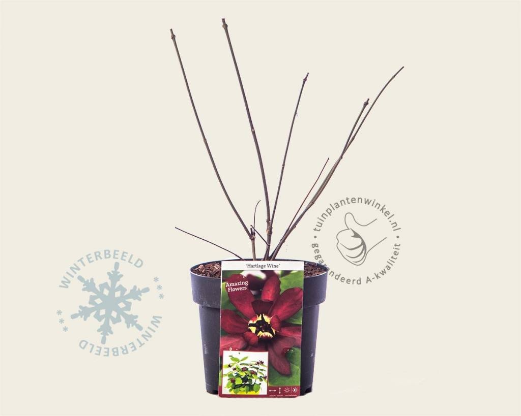 Ook wel Calycanthus × raulstonii 'Hartlage Wine' genoemd. Is een kruising tussen Calycanthus floridus en Sinocalycanthus. Deze niet alledaagse struik is een bijzondere verschijning. De bruinrode bloemen verschijnen in mei en juni met soms een nabloei aan het einde van de zomer. De bloemen hebben een aparte bruinrode of wijnrode kleur afhankelijk van de leeftijd van de bloem. De struik wordt tussen de 1 en 2 meter groot en is goed te onderhouden.
