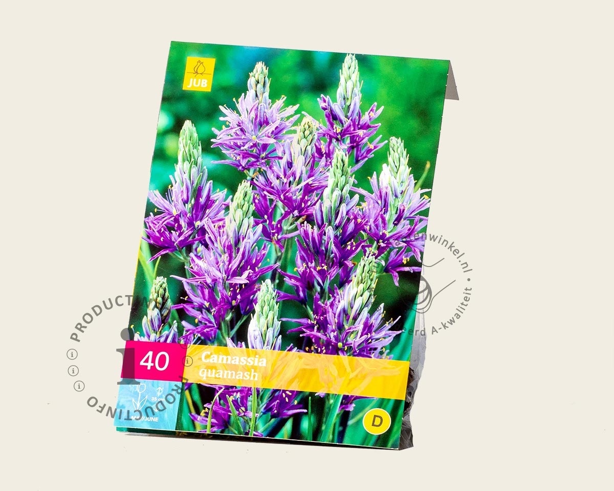 De Camassia quamash is een opvallende bloembollensoort met vele mooie stervormige blauwe bloemen die verdeeld zijn over een lange bloemstengel. De Indianenbloem bloeit in mei en heeft een natuurlijke uitstraling. Camassia past dan ook prima tussen diverse vaste planten, zowel in borders als in combinatie met bodembedekkers. Hij is ook mooi te combineren met diverse Alliumsoorten en Hyacinthoides. Zeer geschikt voor verwildering. De Camassia wordt ook wel eens Prairielelie genoemd.