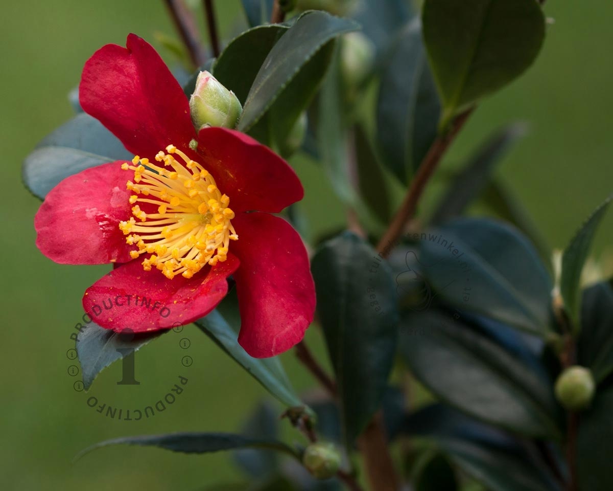 Camellia sasanqua 'Yuletide' bloeit van november - februari met felrode bloemen met mooi afstekende, gele meeldraden. De bladeren van de Herfstbloeiende camelia zijn leerachtig, donkergroen en blijven ook in de winter aan de tuinplant. Door de winterbloei is Camellia sasanqua 'Yuletide' geschikt voor het balkon of terras, zodat u toch kunt genieten van mooie kleuren. De tuinplant kan ook in de border worden aangeplant.