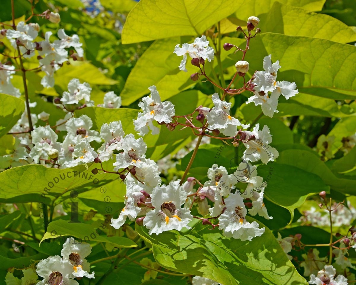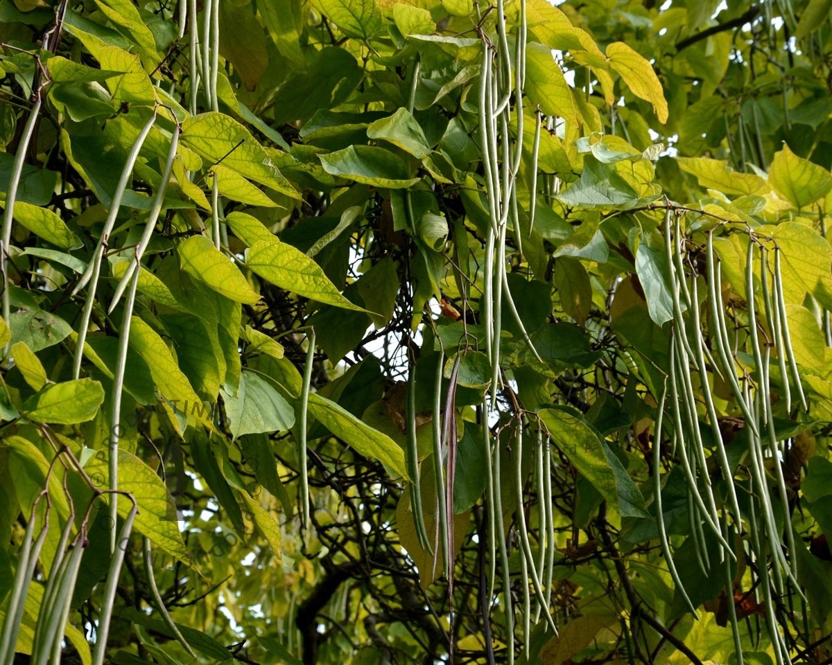 Op latere leeftijd geeft deze boom ook mooie witte bloemen dit in trossen aan de boom verschijnen. Na de bloei vormt de plant peulvormige vruchten die eveneens voor sierwaarde zorgen.