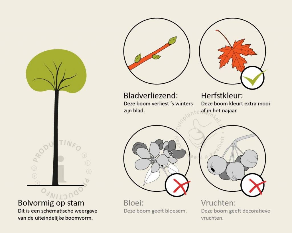 Bomen van tuinplantenwinkel.nl kunt u jaarrond planten. Dit kan omdat we al onze bomen in pot leveren. Aanplanten in de herfst, winter, lente én zomer is dus altijd mogelijk, met aangroeigarantie!