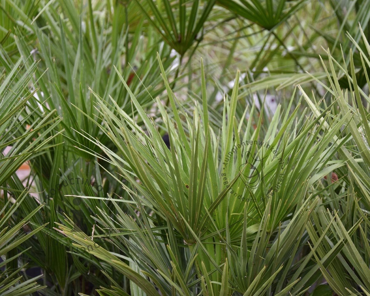 Chamaerops humilis is zeer compact met een bossige groeiwijze. Het blad van de Europese dwergpalm is waaiervormig en felgroen. Let op: er zitten stekels aan het blad. De nieuwe scheuten vanaf de onderzijde van de oude stam zorgen ervoor dat de tuinplant meerstammig wordt.