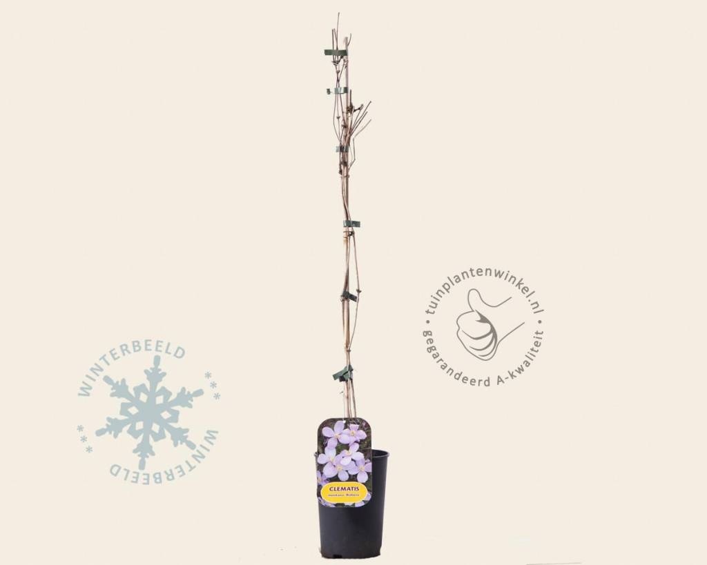 De voet van Clematis montana 'Rubens' moet wel beschermd worden tegen de hete zon. Dit kan door onderbeplanting, of bijvoorbeeld een oude dakpan. Snoeien na de bloei, om de krachtige groei wat binnen de perken te houden.