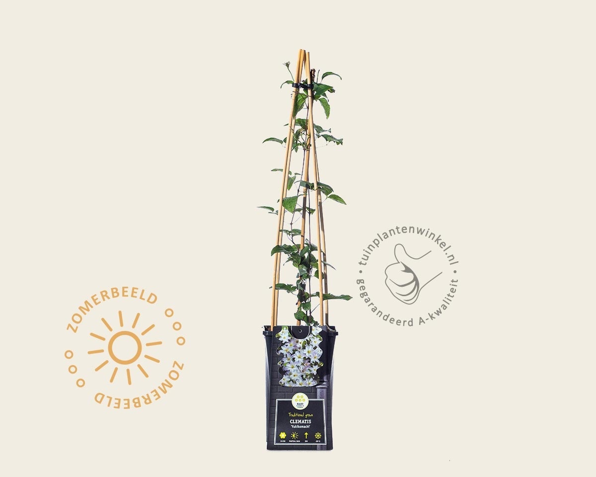 Clematis patens 'Yukikomachi' behoort tot de Patens groep. Deze groep clematissen bloeit met de grootste bloemen. Ze bloeien twee keer per jaar. De eerste bloei vindt plaats rond mei-juni met wit-zachtpaarse bloemen en een tweede bloei volgt tussen juli en september. De tuinplant heeft wel draden of een hekwerk nodig, zodat de windende uitlopers zich daaraan kunnen bevestigen. Enig vlechtwerk van u is daarbij niet overbodig.