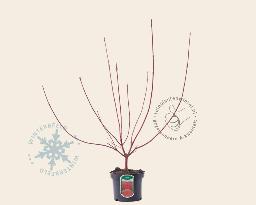 Antwoord: In het najaar is de mooie herfstkleur van deze heester erg mooi, maar de belangrijkste sierwaarde ligt in de winter (als er verder weinig te zien is in de tuin) bij de schitterende rode takken.