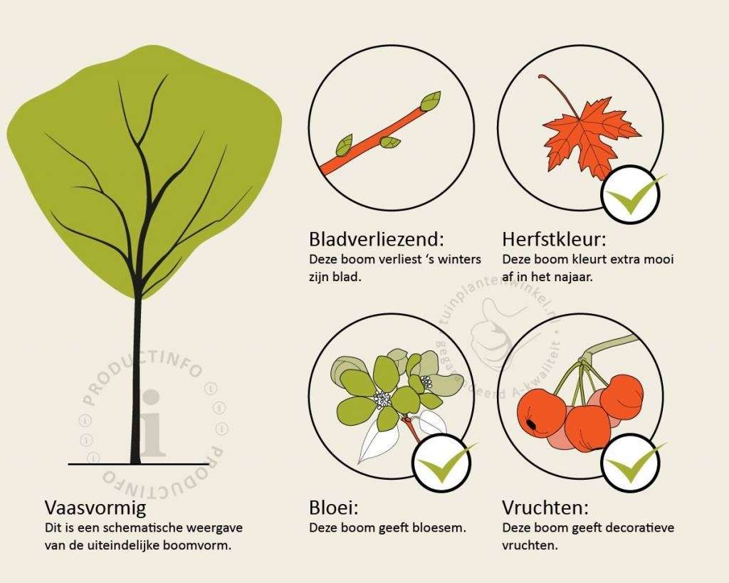Bomen van tuinplantenwinkel.nl kunt u jaarrond planten. Dit kan omdat we al onze bomen in pot leveren. Aanplanten in de herfst, winter, lente én zomer is dus altijd mogelijk, met aangroeigarantie!