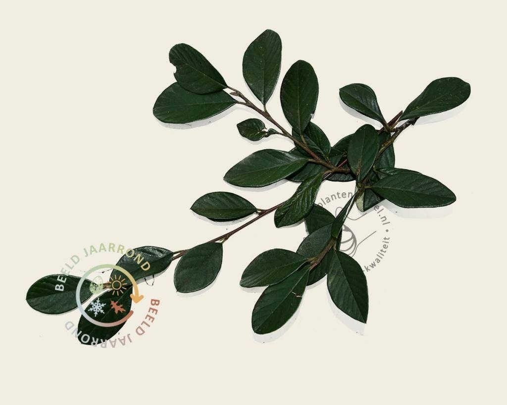 De wintergroene Cotoneaster lacteus is een prachtige tuinplant om te zien in elk seizoen. In het voorjaar bloeit de struik met roomwitte bloemtrossen. Na de bloei groeien er bessen aan de Dwergmispel, die vanaf het najaar rood kleuren. Omdat de vogels ze in eerste instantie veelal links laten liggen, blijven deze bijna de gehele winter aan de plant hangen.