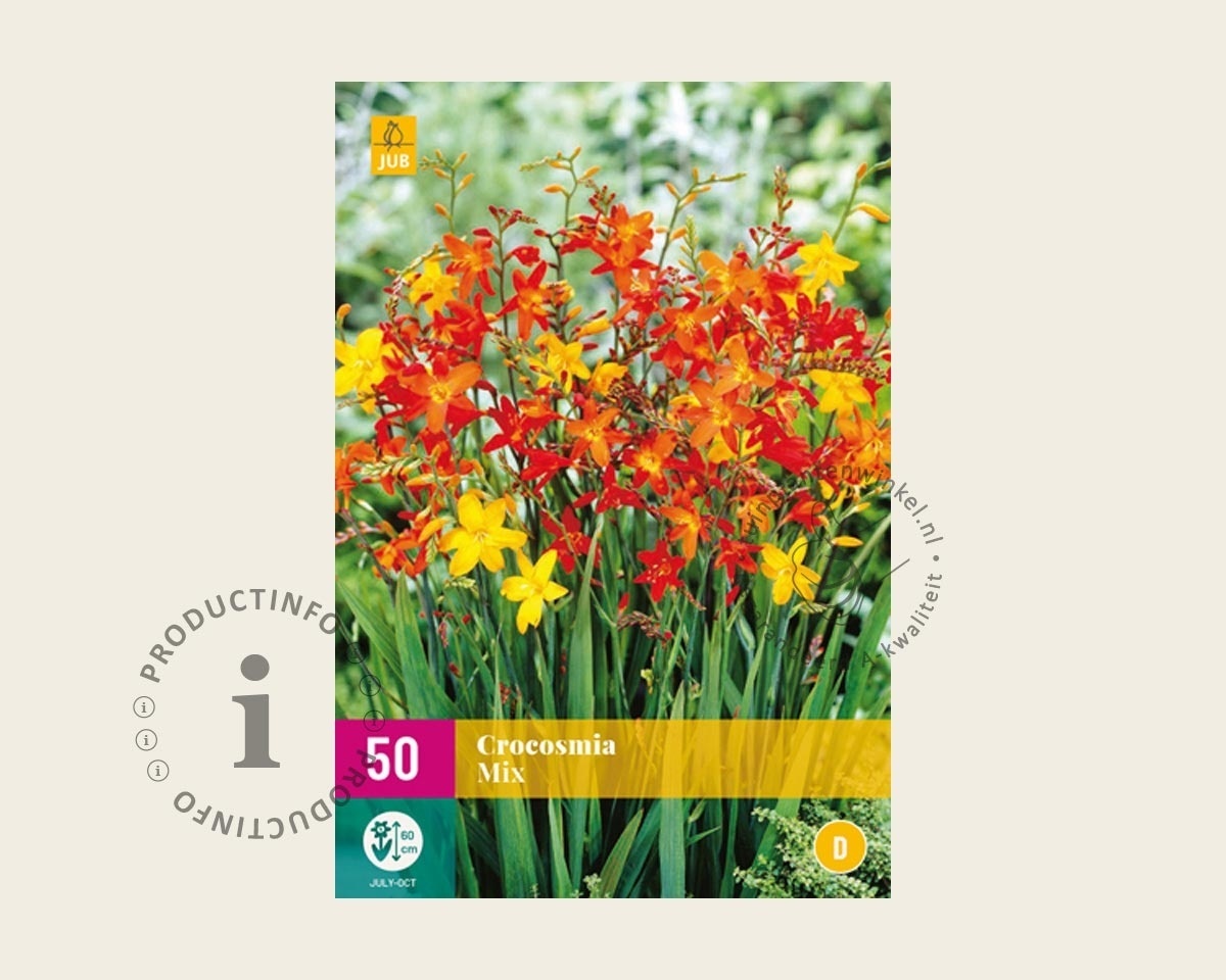 De Crocosmia, met zijn levendige en vurige bloemen, is een opvallende toevoeging aan elke tuin of bloembed. De Crocosmia Mix, een selectie van knollen, biedt een verscheidenheid aan kleuren, van dieprood tot vurig oranje en goudgeel, waardoor ze een uitstekende keuze zijn voor tuiniers die op zoek zijn naar een kleurrijke impact.