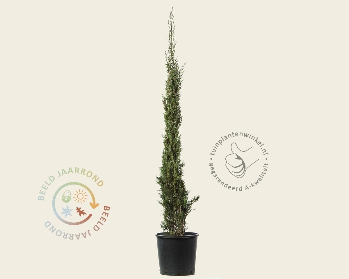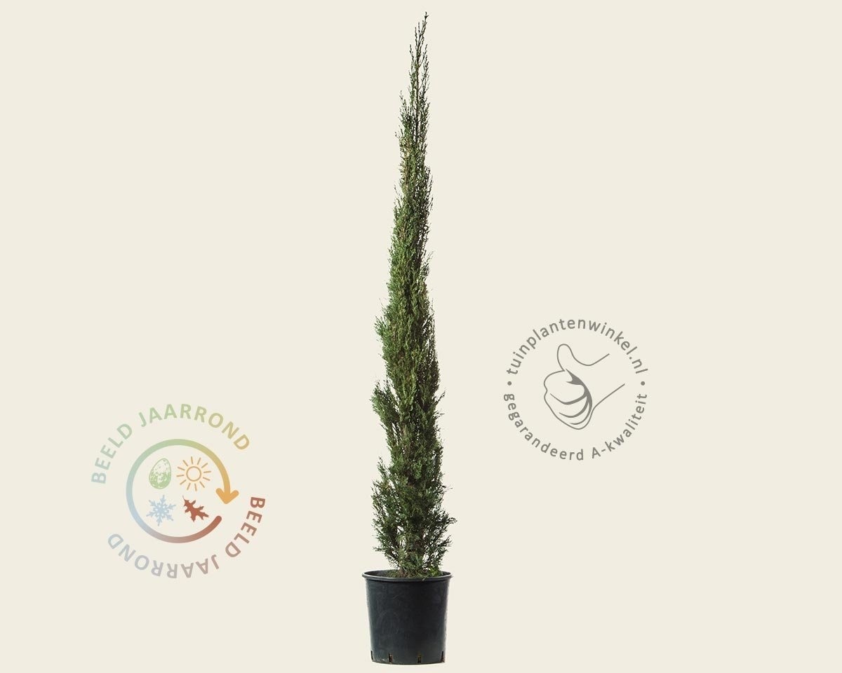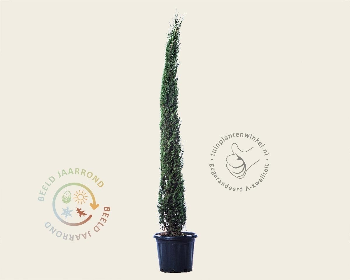 Cupressus sempervirens (= altijd groen) is over het algemeen winterhard, maar kan bij extreem lage temperaturen schade oplopen. Vandaar dat deze tuinplant een beschutte standplaats verlangt. Bij zeer strenge vorst (vanaf -15 graden Celsius) raden wij aan deze cipres te beschermen met vliesdoek.