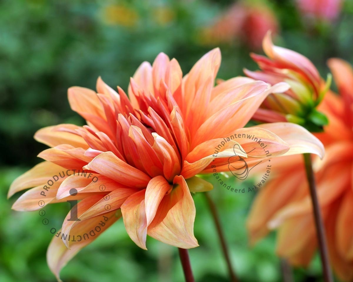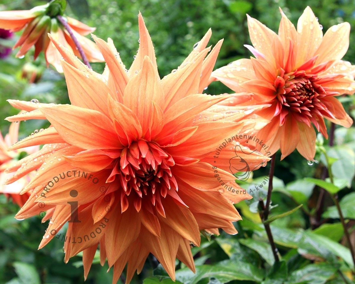 Deze dwergdahlia heeft warme oranje kleurige bloemen die niet al te hoog worden en dus ook goed in een pot op het terras of balkon kan worden gebruikt. Zet de plant op een zonnige tot halfschaduw plaats.