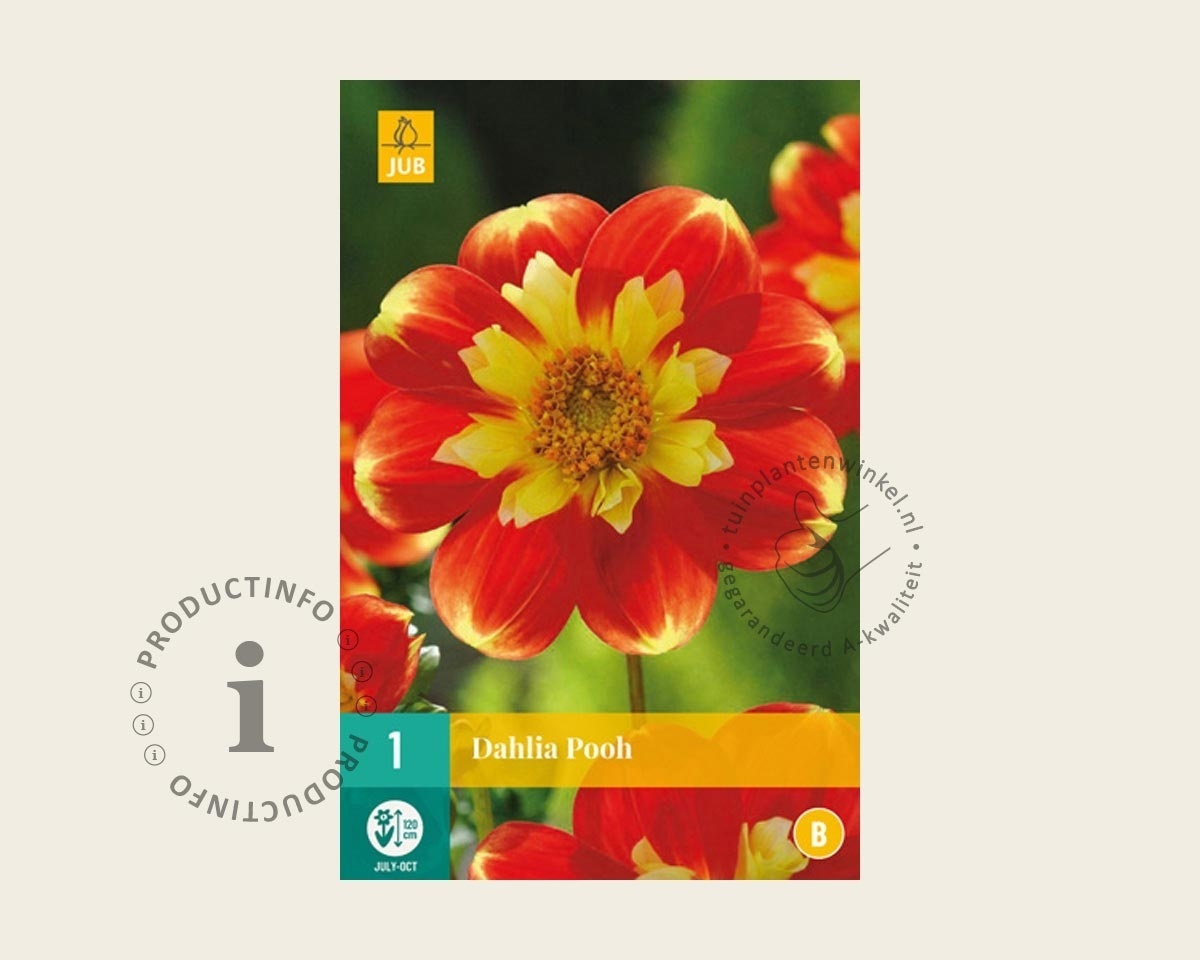 Dahlia 'Pooh' staat graag in de volle zon en kan heel goed tussen vaste planten geplant worden. In het najaar de knollen uit de grond halen en bewaren in een vorstvrije omgeving. Vanaf half mei begint de plant uit te lopen vanuit de grond. De bloem verschijnt in juli. Let op Dahlia's zijn niet het hele jaar door leverbaar.