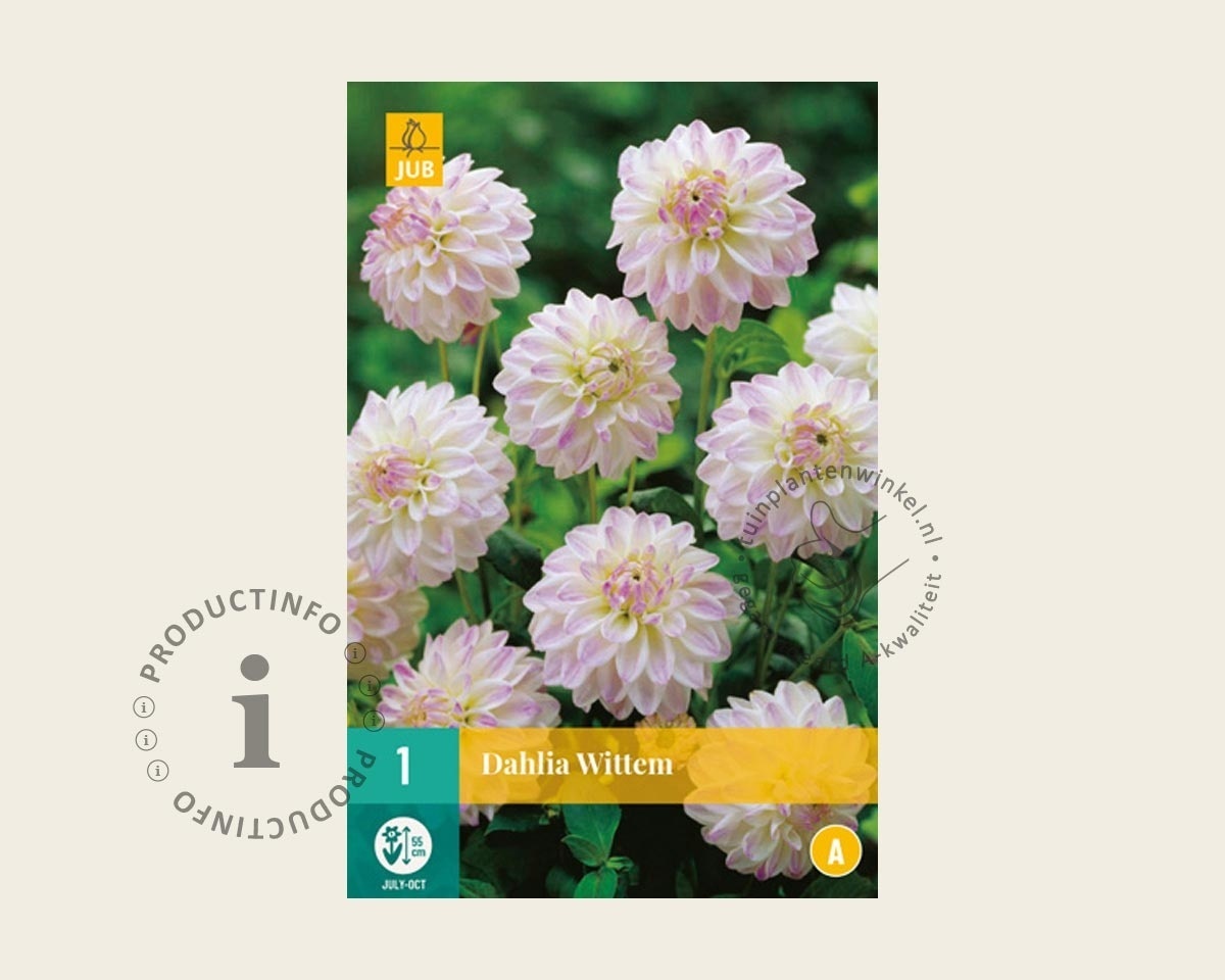 De Dahlia 'Wittem' is een oogstrelende variëteit die bekend staat om haar prachtige, roomwitte bloemen. Deze sierlijke plant is een echte aanwinst voor elke tuin, vanwege haar uitbundige bloei en elegante verschijning. Dahlia 'Wittem' kan tot wel 120 cm hoog worden en bloeit van de vroege zomer tot aan de eerste vorst, waardoor ze een langdurige en verbluffende aanvulling is op uw tuin.