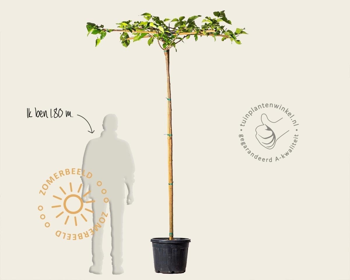 De stamhoogte is natuurlijk belangrijk omdat u onder de boom door moet kunnen lopen. Door regelmatige snoei houdt u de boom goed in model want het is een snelle groeier. In de herfst geven deze dakbomen gele bladeren die daarna afvallen.