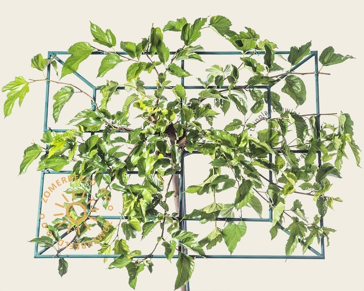 Speciaal voor deze functie is er een vruchtloze boom geselecteerd want de vallende vruchten zorgen voor flink wat overlast wanneer u onder de boom een mooie tafel wilt plaatsen. Deze selectie van de dakmoerbei heet met zijn Latijnse naam de Morus alba ‘Fruitless'. In mei ontwikkelt de boom grote, glanzende, donkergroene bladeren die al snel een gesloten dek vormen. ‘Fruitless' zegt al dat deze soort geen vruchten draagt, zodat uw tuinmeubels schoon blijven en er geen ook geen extra poetsbeurten voor het terras nodig zijn.