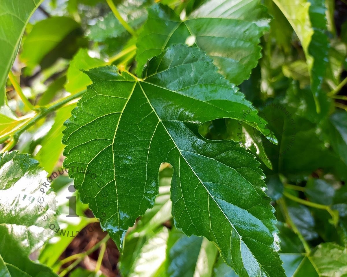 Heeft de dakmoerbei Morus alba fruitless grote donkergroene bladeren?