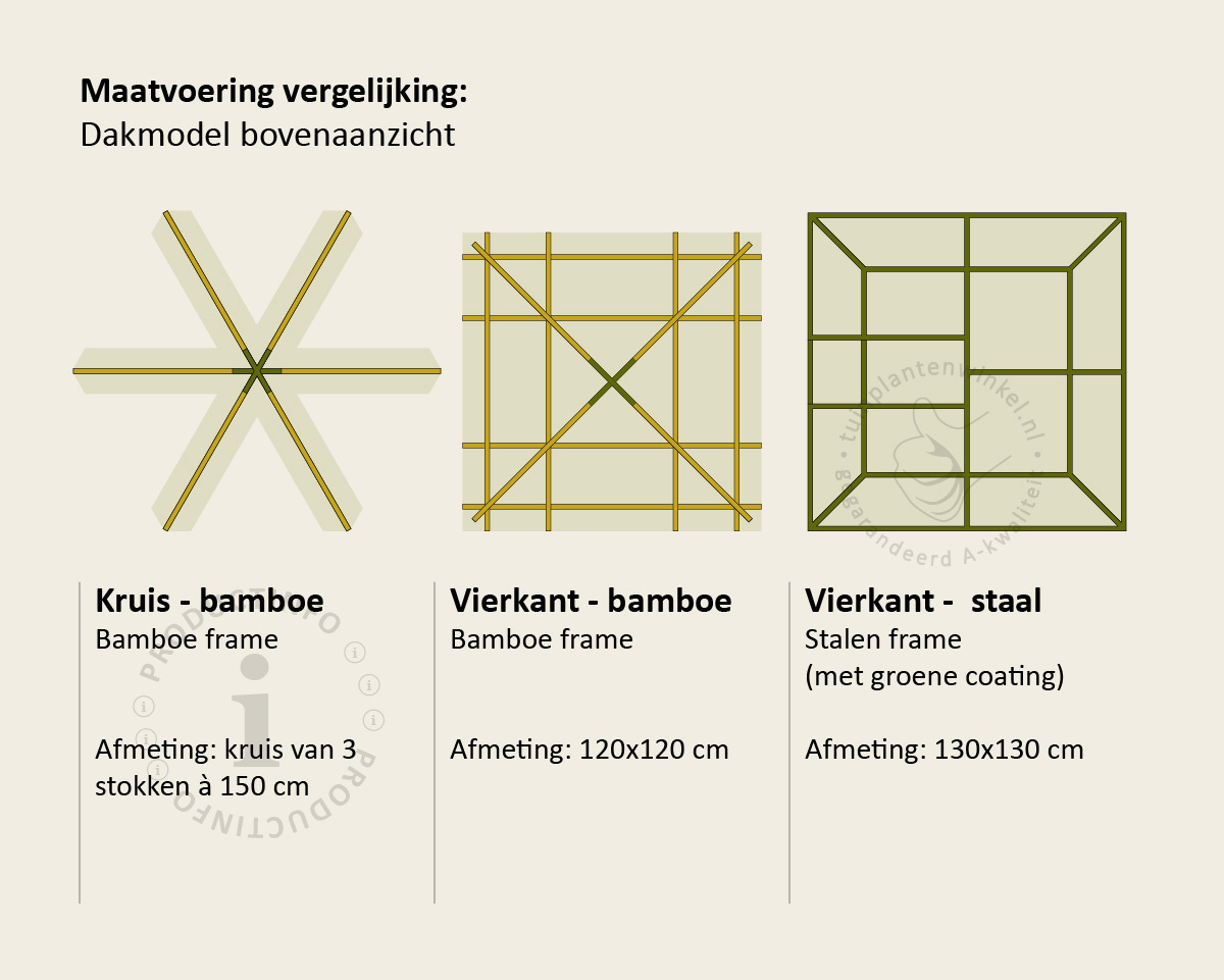 Dakmoerbei - Dakmodel: Kruisdak - bamboe (3 x stok 150 cm)
