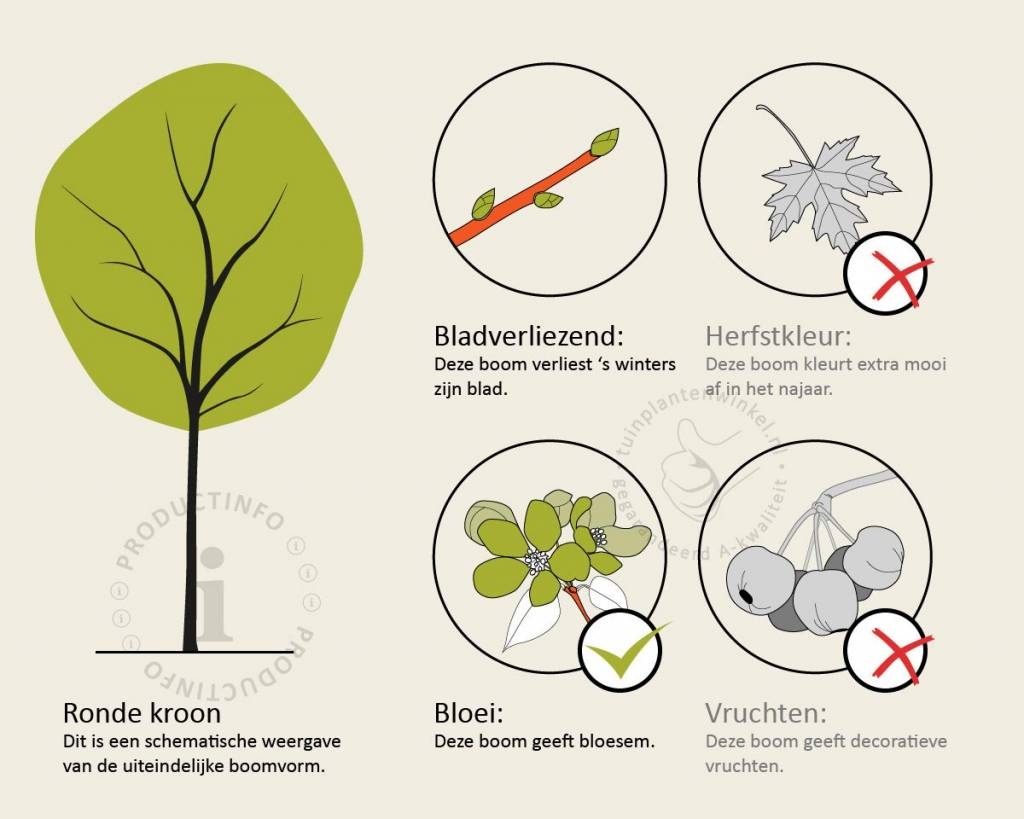 Bomen van Tuinplantenwinkel.nl kunt u jaarrond planten. Dit kan omdat we al onze bomen in pot leveren. Aanplanten in de herfst, winter, lente én zomer is dus altijd mogelijk, met aangroeigarantie!