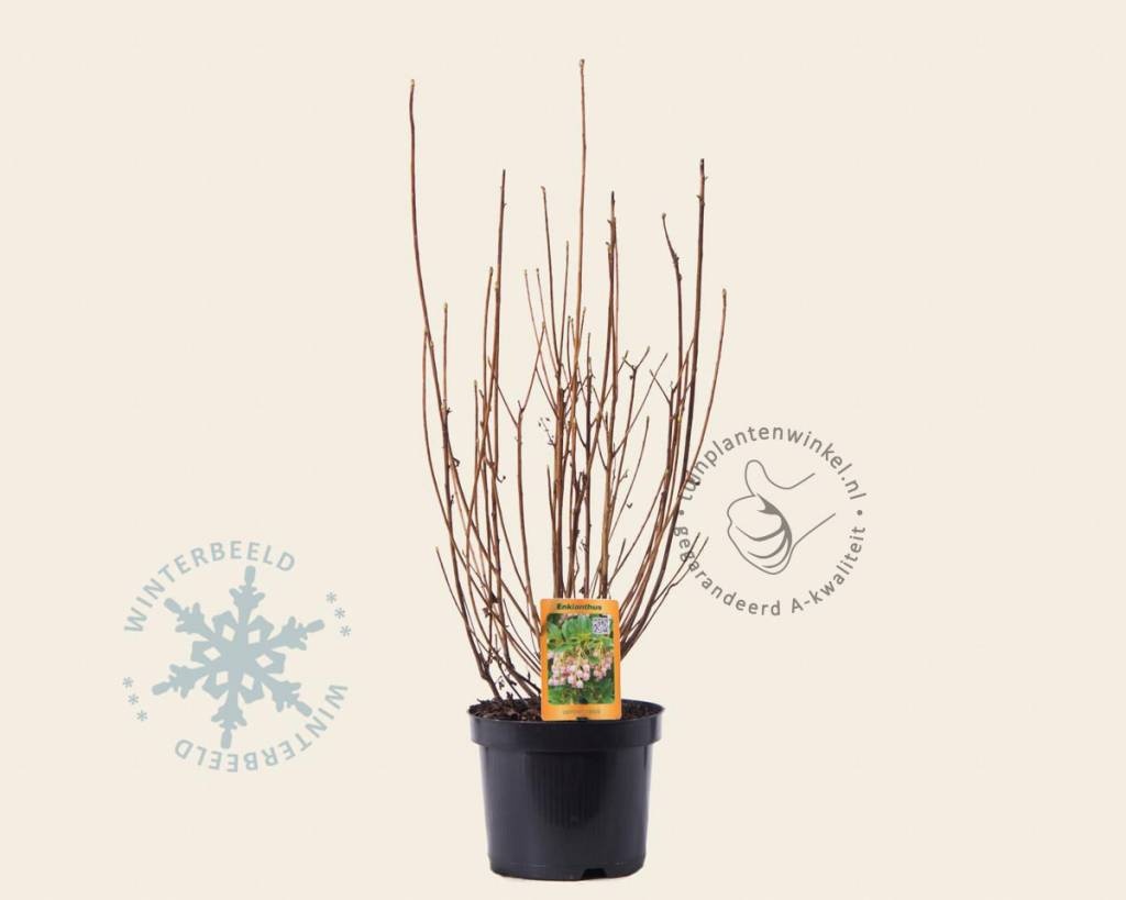 Antwoord: De Nederlandse naam voor Enkianthus campanulatus is ook wel Pronkklokje ook wordt deze weleens Japanse klokjesstruik genoemd. Enkianthus campanulatus kan heel makkelijk direct naast vaste planten staan en onder bomen geplant worden. De Enkianthus campanulatus is het jaarrond aan te planten. Enkianthus past goed in een Oosterse tuin. Deze plant en anders heesters en struiken, zijn bij Tuinplantenwinkel gemakkelijk te bestellen en te laten bezorgen!