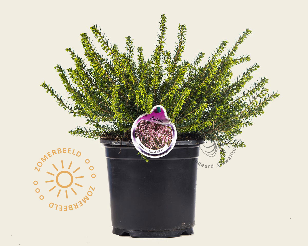 Erica darleyensis 'Ghost Hills' is een winterbloeiende tuinplant. De paarsroze bloemetjes zorgen in de periode van december tot in april voor kleur in de tuin of in een pot op het balkon of terras. De naaldvormige blaadjes zijn donkergroen. Als bodembedekker of met een aantal in een groepje bij elkaar geeft het mooiste effect.