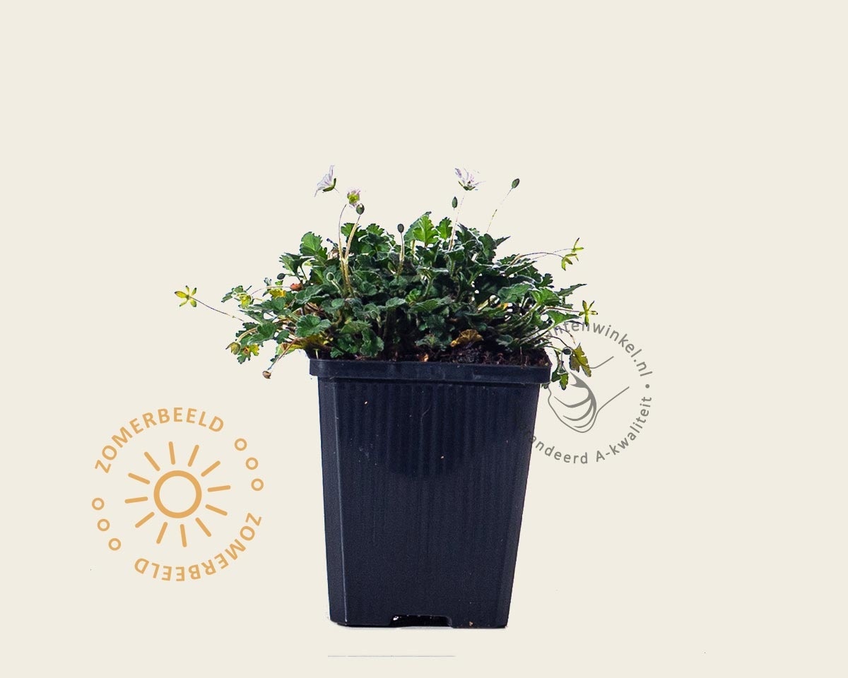 Erodium reichardii 'Album' is een langbloeiend, laagblijvend, vast tuinplantje met vele, kleine, witte bloemetjes met roze adering. Reigersbek komt oorspronkelijk uit de bergen en is daarom uitermate geschikt om de rotsige, droge, zonnige plekken in uw tuin op te vullen, zelfs tussen een open bestrating. Bij een niet te strenge winter is Reigersbek zelfs groenblijvend. De tuinplant combineert goed met Campanula en Viooltjes.