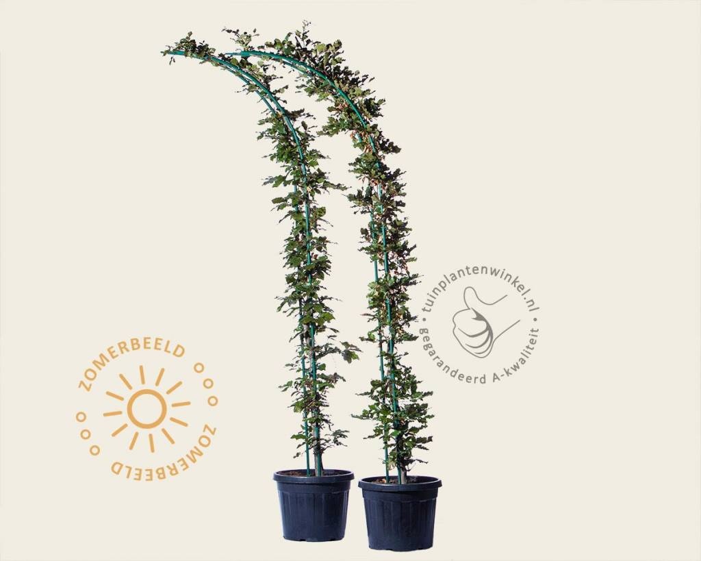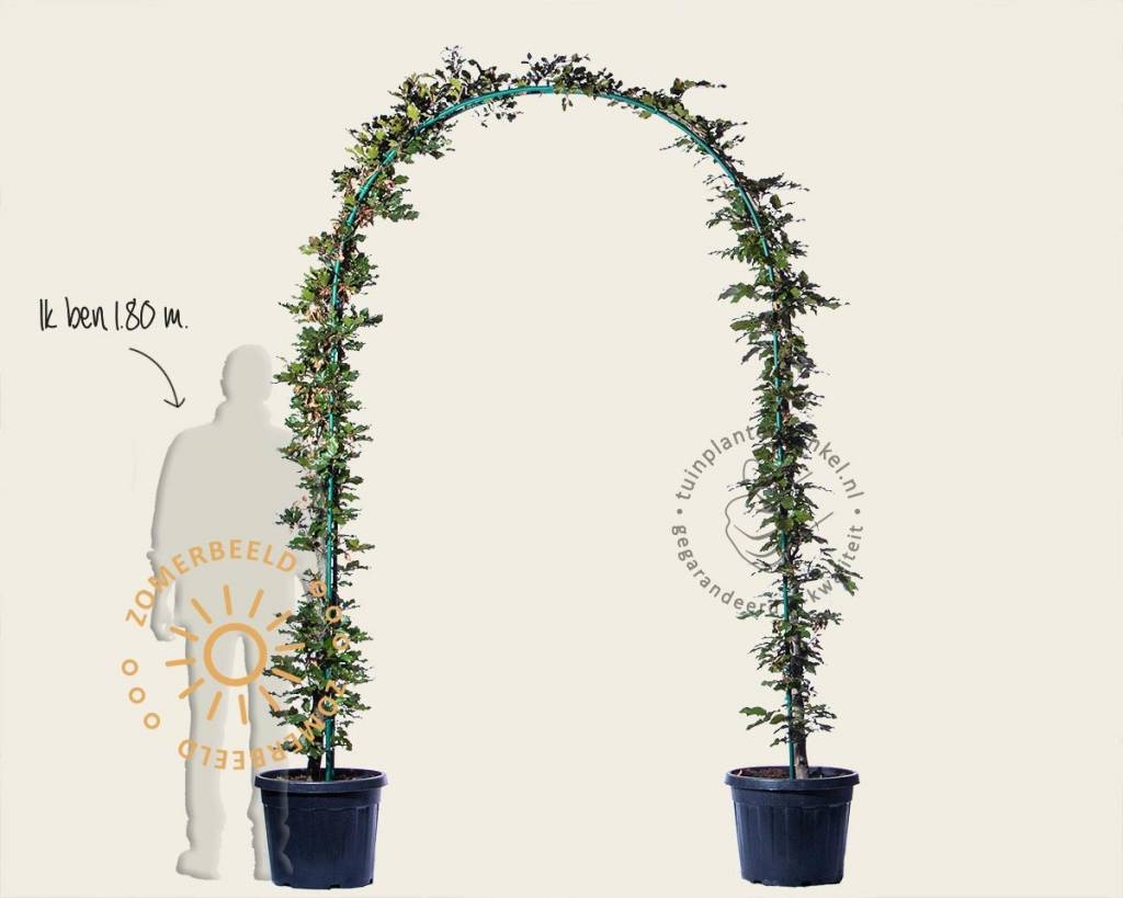 Inhoud boogvorm - set: 2 x halve boogvorm met geleide Fagus sylvatica 'Atropunicea'. U koopt dus één hele boog.