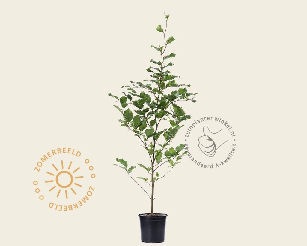 De Fagus sylvatica is de groenbladige variant van de beuk. Het is een bladverliezende haagplant met een mooie herfstkleur. Het blad van deze tuinplant blijft in de winter bruin aan de plant hangen. Hierdoor is de haag het hele jaar door wel dicht. Pas in het voorjaar wanneer het nieuwe blad er aan komt laat de beuk al het oude blad vallen. Bij dit product gaat het om een in pot gekweekt exemplaar. Deze zijn het gehele jaar door aan te planten.